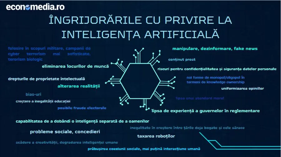 I-am întrebat pe cititorii noștri și despre îngrijorările pe care le au cu privire la inteligența artificială, iar lista de teme e destul de lungă și include, printre altele: manipulare, dezinformare, fake news, riscuri legate de siguranța datelor, lipsa de experiență a guvernelor în reglementare, probleme sociale, concedieri, alterarea realității, capabilitatea de a dobândi o inteligență separată de a oamenilor.