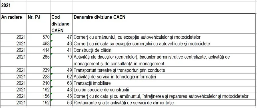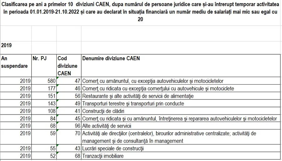 Datele financiare pentru 2022 nu sunt încă centralizate, așa că pentru anul în curs ONRC are o statistică generală, pentru toate categoriile de firme, indiferent de numărul de angajați: au fost 10.523 de firme suspendate și alte 56747 radiate, doar până la 21 octombrie.