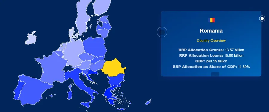 România are alocate, în total, granturi de aprox. 14 miliarde de euro și împrumuturi alocate de aproape 15 miliarde, alocarea reprezentând aproximativ 12% din PIB.